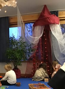 Märchen-Weihnacht am 04.12. im Kindergarten Gemeinsam mit den Eltern starteten wir unser Weihnachtsfest in der Turnhalle. Bei einem gemütlichen Beisammensein sangen die Kinder Weihnachtslieder und stimmten sich auf die besinnliche Zeit ein. Anschließend ging es in die einzelnen Gruppen, wo den Kindern ein Märchen erzählt wurde – jedes Kind durfte sich bereits am Tag zuvor sein Wunschmärchen aussuchen. Im Flur wartete danach ein gemütliches Beisammensein mit Plätzchen, Ratschen sowie Punsch und Glühwein für die Erwachsenen. Währenddessen spielten die Kinder entspannt in den Gruppenräumen. Es war ein ruhiges, stimmungsvolles und sehr herzliches Weihnachtsfest.